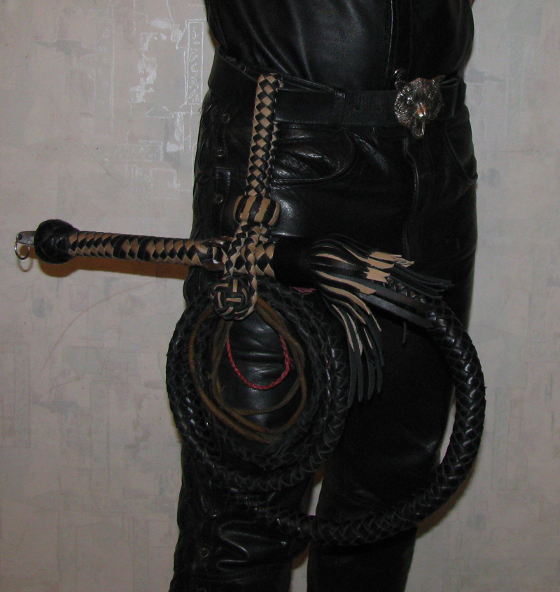 Шахматный Whip Holster. Основа - чепрак. Оплётка в 8 полос (петля в 4). Узел - турецкая голова двухцветная. Схема закрепления кнута видна на фото.
