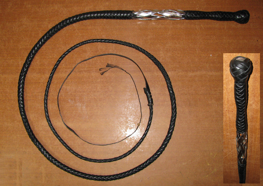 Изготовлен из полированной натуральной чёрной кожи. Вставка в рукояти стальная хромированная, плетёная из восьми полос. Эргономичная рукоять. Навершие в форме традиционной турецкой головы, в «лысине» последней проглядывается стальная основа.
